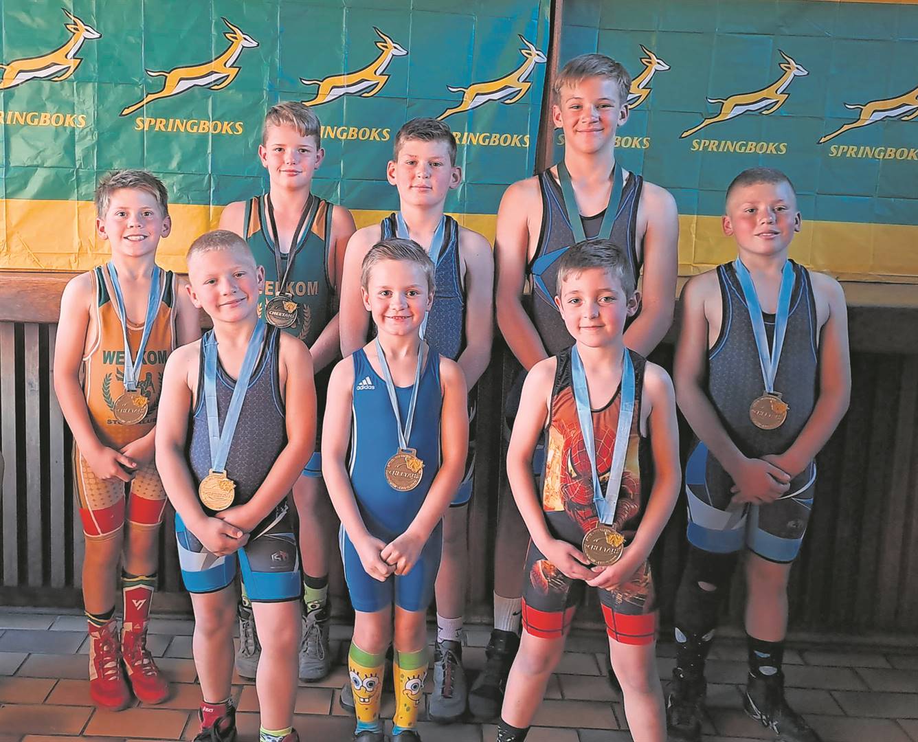 Die Vrystaatse stoeikampioenskappe het Saterdag 9 September by die Laerskool Voluit in Virginia plaasgevind, en dié agt stoeiers van die Welkom-klub stoeiers het uitstekend gevaar. Van links, voor: Jared van der Merwe (o.8
