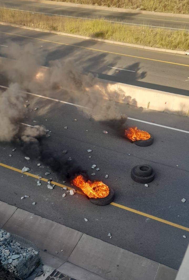 On Tuesday, both lanes of the N1 were barricaded with rubbish, stones, and burning tyres.