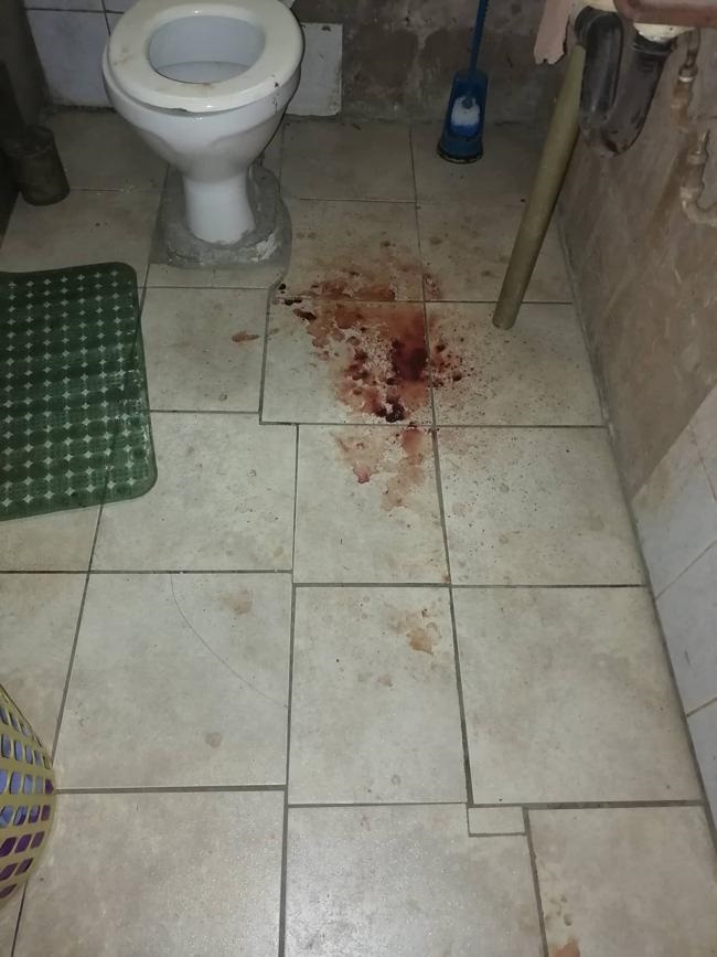 Sy het heelwat bloed verloor, en die buurvrou het ’n ambulans ontbied.