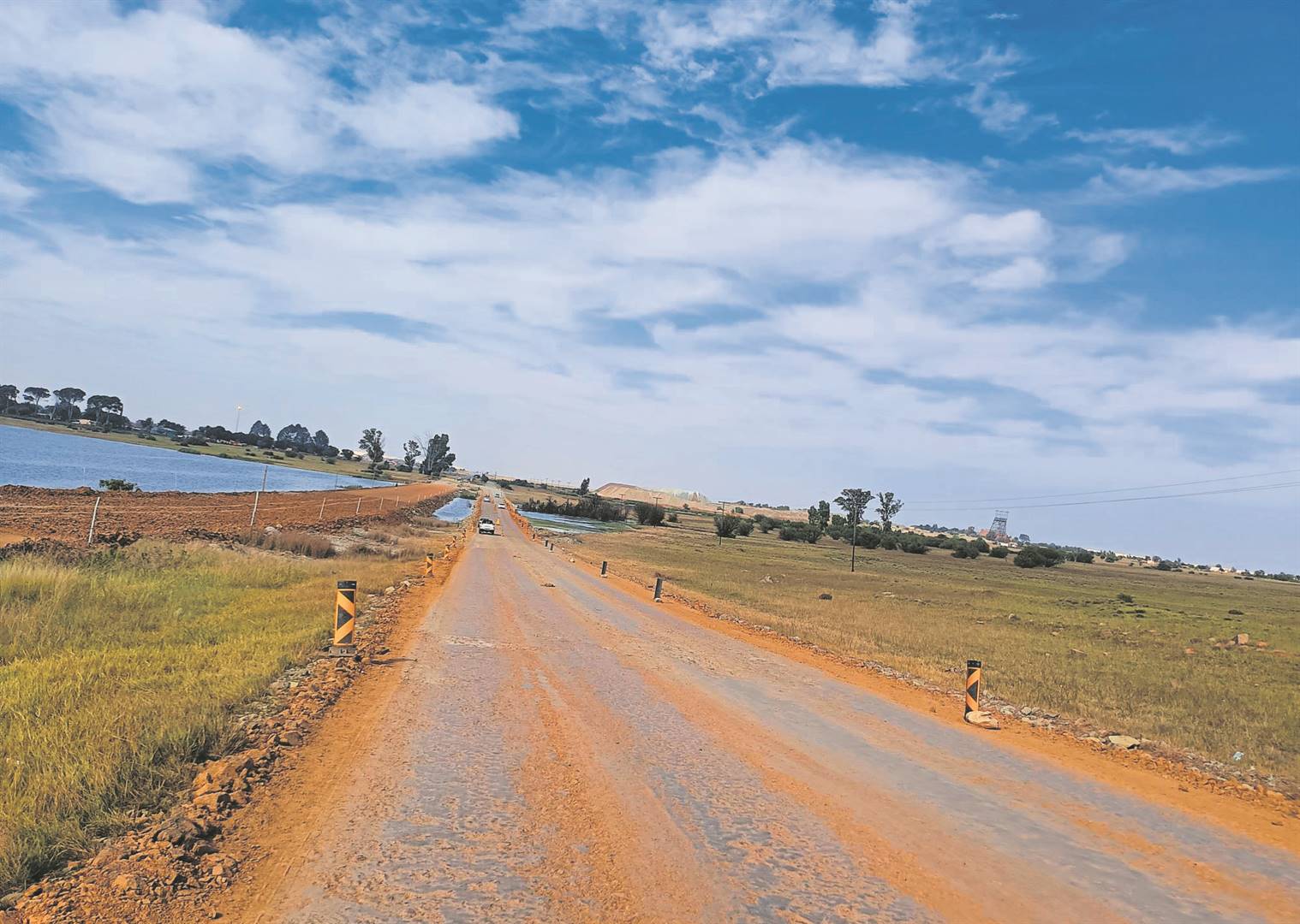 Die gedeelte van verbrokkelende pad by “Stinkpan”, Allanridge, word herbou. Dit kom nadat inwoners jare lank gekla het dat die pad ondermyn word deur stygende watervlakke wat deur die voortdurende pomp van riool en oorstroomende water in die dam veroorsaak word. Dit het die pad aangetas, en inwoners was bang dat die pad eindelik sou ineenstort en in die pan sou wegsink.Foto: Marti Will