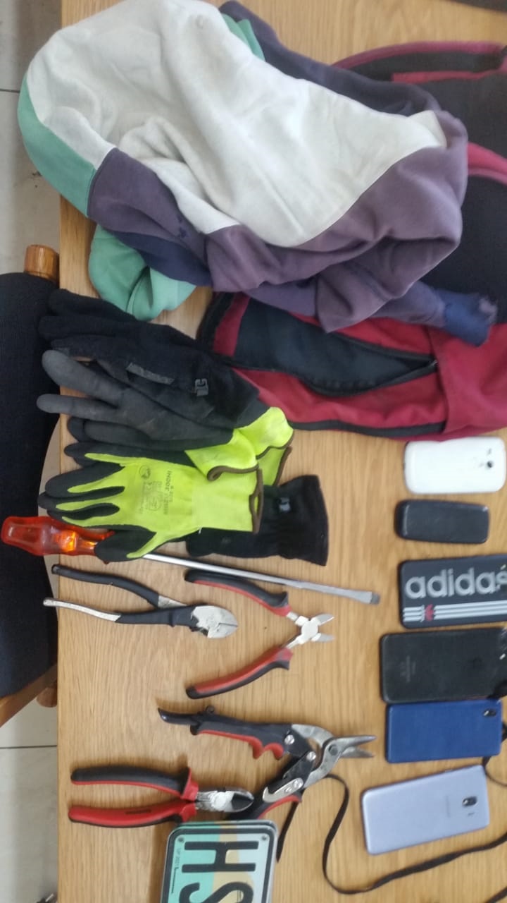 Two suspects were caught red-handed in the shop with miscellaneous burglary tools in their possession. A white VW Polo was spotted near the crime scene, and the police discovered that the driver had with him a big hammer, bolt cutter and grinding machine.