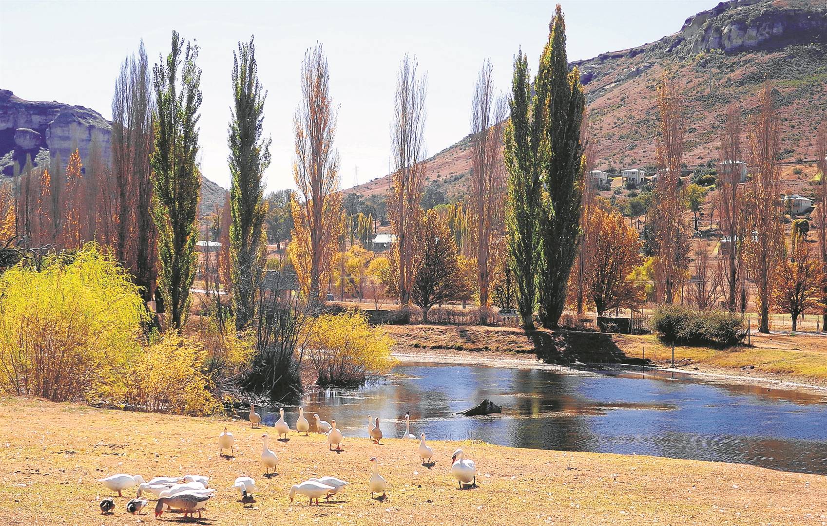 Die winter sluip al nader – terwyl die kleurvolle herfs besig is om te groet. Die nasionale weerdiens voorspel vir die komende week mooiweer tot gedeeltelik bewolkte toestande met koeler temperature. Moontlike reën word van Vrydag (27/05) tot Sondag (29/05) oor die oostelike dele van die Vrystaat verwag, wat taamlike koeler weer kan meebring. Dié herfstoneel is in Clarens afgeneem.Foto: Marietjie Hayward