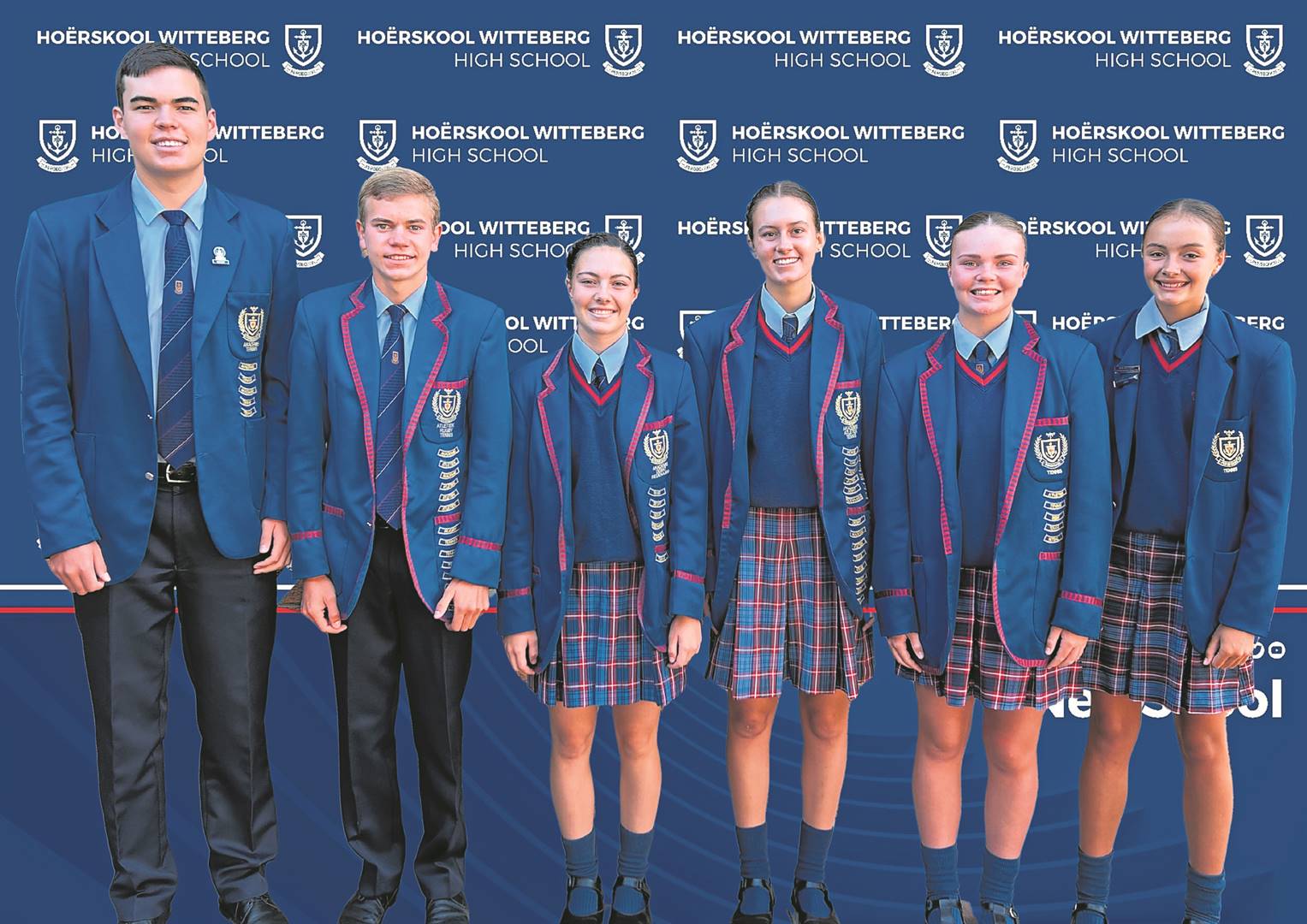 Die Hoërskool Witteberg in Bethlehem spog met ses tennispelers wat vir die Vrystaat-span gekies is. Van links is Hugo van Strijp, Evan Nieuwoudt, Tria-Marie Strydom, Zané Wessels, Marinelle Oelofse en Inneke Fourie.Foto: Verskaf