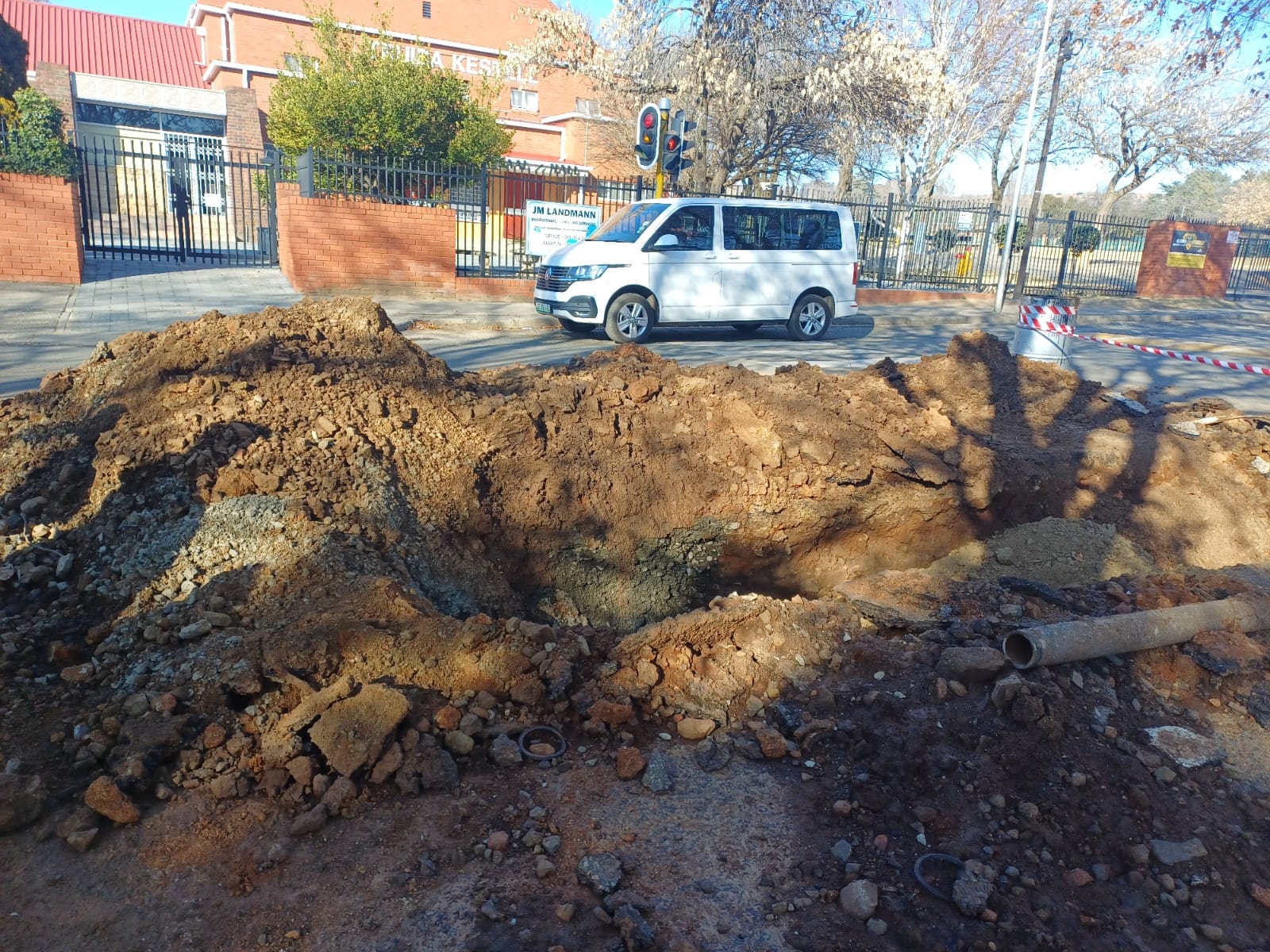 Dit volg nadat die Dihlabeng-munisipaliteit ‘n gat vir herstelwerk in Februarie voor die skool in Wesselstraat gegrawe het en dit nie weer opgevul het nie.