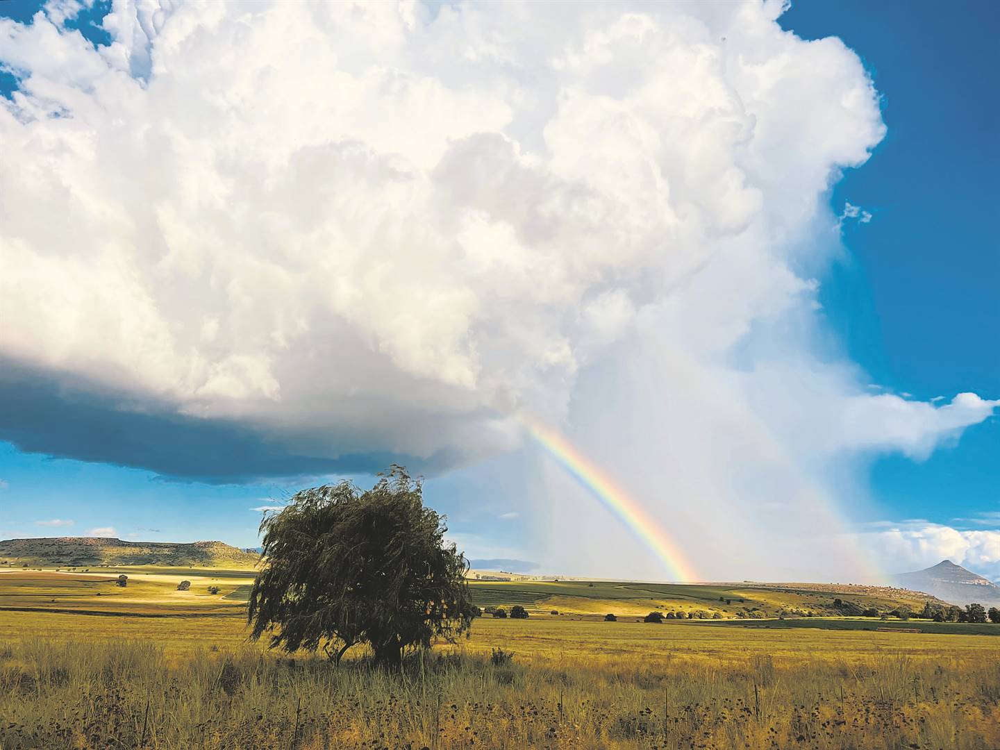 “Ek kon nie ophou kyk na die pragtige kontras nie. Die donker wolk links en dan die pragtige dubbele reënboog regs, met die boompie toevallig daar. Dit was vir my so simbolies. In donkertye moet ons ons oë gefokus hou op Jesus, selfs in die storms, want soms seën Hy ons met ’n dubbele seën,” sê Estelle van Straaten, van Bethlehem, wat dié besonderse foto geneem het. Sy sê die boompie is vir haar simbolies van die mens wat vorentoe kyk en nie net die donker raaksien nie, maar ook die lig en hoop daarby. Dié treffende foto is op 11 Februarie net ná 17:00 op die Clarens-pad geneem. Volgens Van Straaten was dit op die dag bewolk en het dit kol-kol gereën. Die Suid-Afrikaanse Weerdiens in Bloemfontein voorspel vir die week wat voorlê minimum temperature tussen 14 °C en 18 °C, met maksimum temperature wat sal wissel tussen 21 °C en 32 °C, vir die streek. Reën word ook voorspel.Foto: Estelle van Straaten