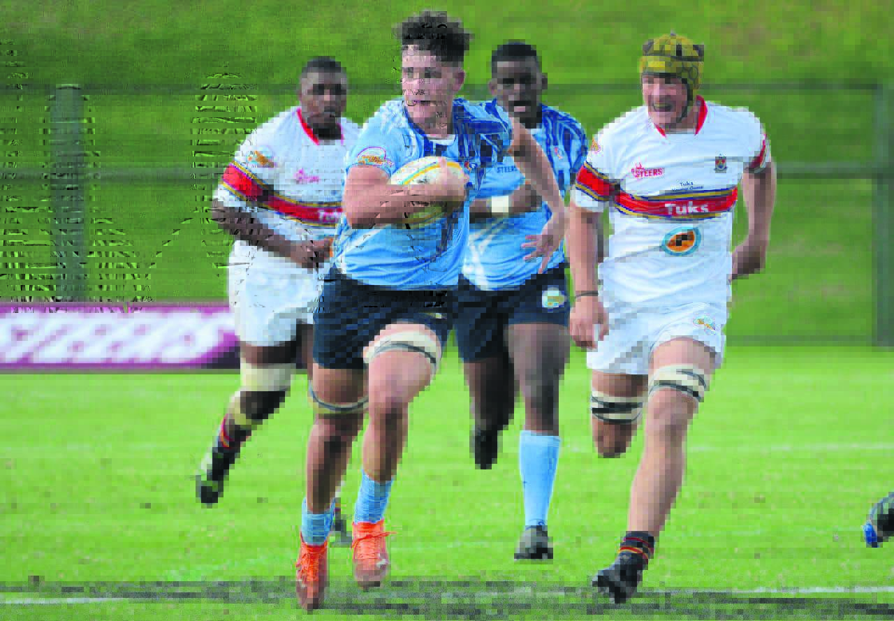 Die Hoërskool Witteberg in Bethlehem is trots op een van sy oudleerlinge, Tiaan Naudé (hier op dreef met die bal), wat in 2022 in matriek was. Hy het onlangs ’n debuut gemaak toe hy vir die Sentrale Universiteit vir Tegnologie (SUT), Vrystaat, se Young Guns-span van Bloemfontein in die Varsitybeker-toernooi teen die Universiteit van Pretoria (Tukkies) en die Noordwes-Universiteit in Potchefstroom (Pukke) uitgedraf het. Naudé het Witteberg in 2021 en 2022 ten tyde van die Griffon-Cravenweek as speler verteenwoordig. Hy het in Januarie sy studie aan die SUT in Bloemfontein begin, waar hy onderwys studeer. Naudé sit terselfdertyd sy rugbyloopbaan voort en hou nou ook die SUT se naam hoog.Foto: Verskaf