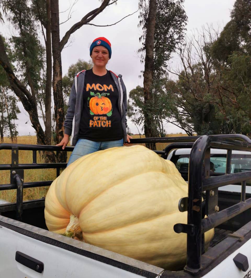 Lee-Ann van Zyl van Standerton is Saterdag (09/04) as pampoenkampioen van die eerste Reuse-pampoenfees gekroon. Haar pampoen, wat in Oktober verlede jaar geplant is, het die skaal op 251 kg laat kreun. Lees meer oor dié fees, wat in Vrede aangebied is, op bl. 5.Foto: Verskaf