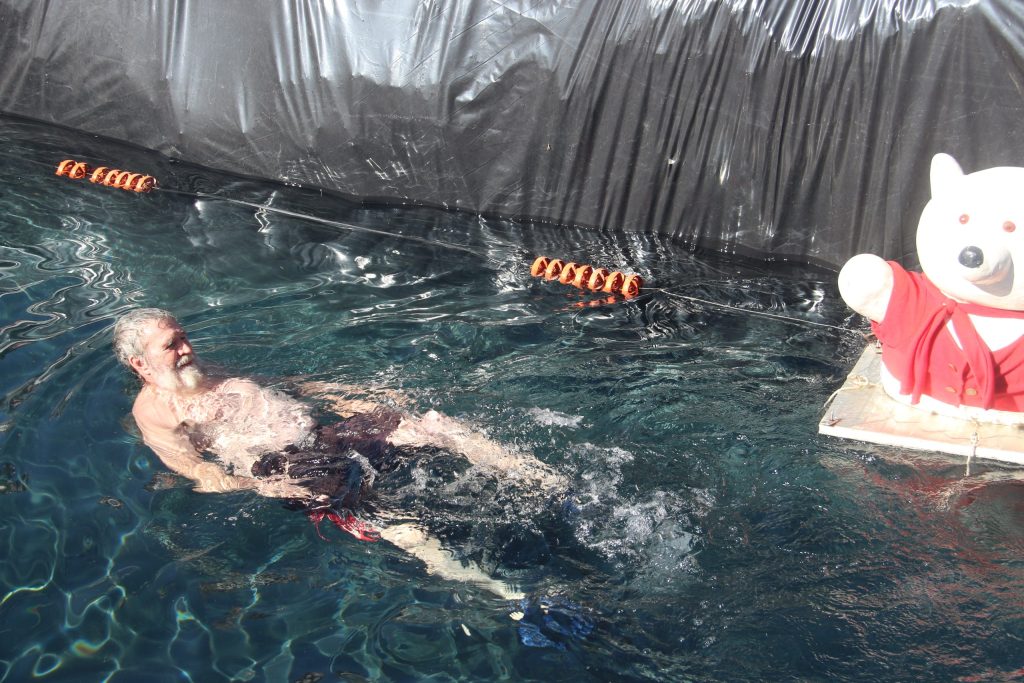 Die gat van 30m lank is op sy diepste 2m diep en 3m wyd en is vir die Ysbeerswem met seil uitgevoer. Water is ingepomp sodat die water nie dieper as 1,5m in die middel was nie. Yssel sê hy skat daar was sowat 1 000 mense.