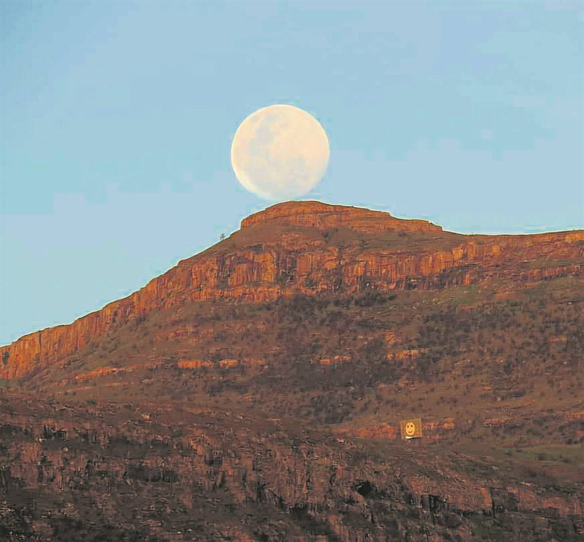 Warm tot uiters warm weerstoestande word in die Noord- en Oos-Vrystaat verwag. Die Suid-Afrikaanse weerdiens (SAWD) in Bloemfontein voorspel vir die streek in die komende week minimum temperature tussen 13 °C en 20 °C, met maksimum temperature wat sal wissel van 30 °C tot 36 °C. Geen reën word voorspel nie. Dié foto van die volmaan wat oor die berge in Clarens opkom, is op 14 November geneem.Foto: Cecile Nijland