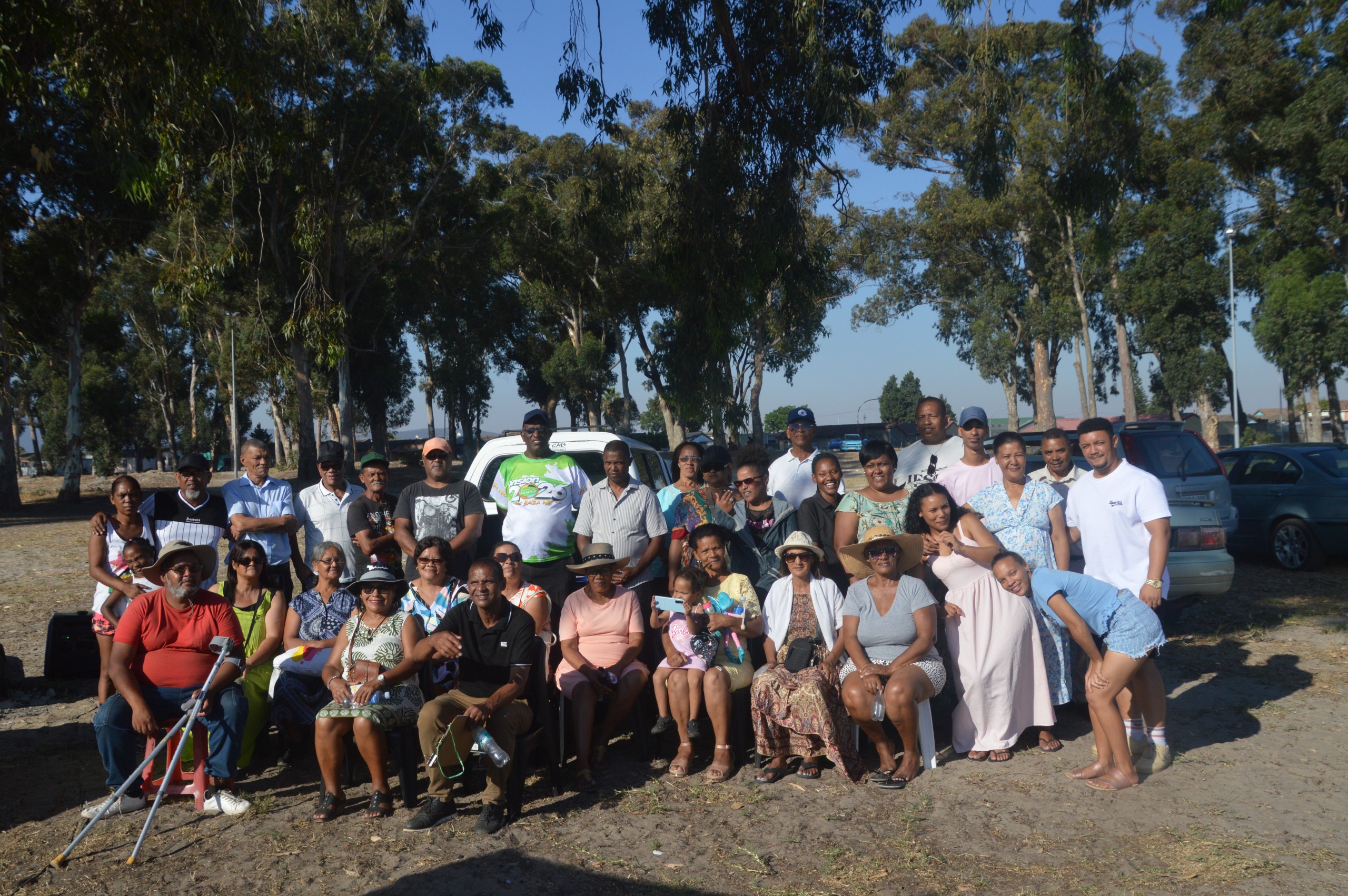 Lede van die Peoples Process voor die Atlantis-Thusong-sentrum wat die Stad Kaapstad nou wil verkoop.
