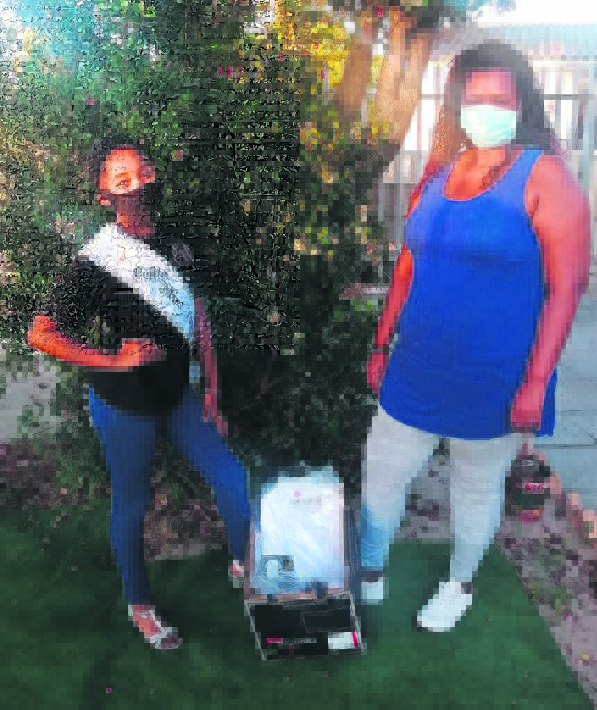 Klein, maar met ’n hart van goud – Leazle de Villiers (10) het onlangs skoolklere en skoene aan Lee-Zaan Jacobs van die Atlantis Sanctuary of abused women and children oorhandig.Foto: Verskaf