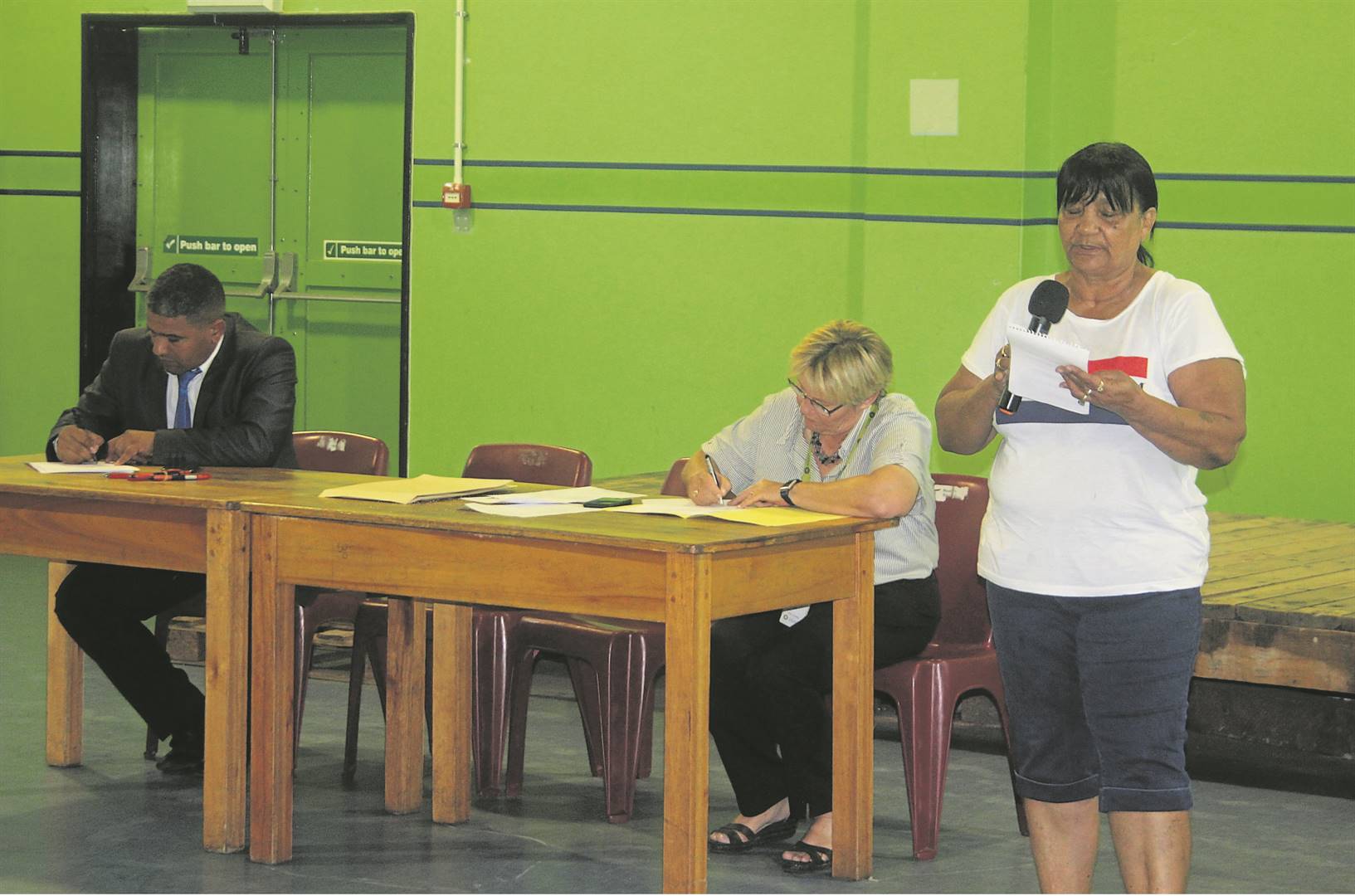 Voorsitter, Cynthia Clayton, moes omtrent bontstaan toe opposisielede wou weet waar die terugvoering is omdat daar geen verslae ingedien is nie.