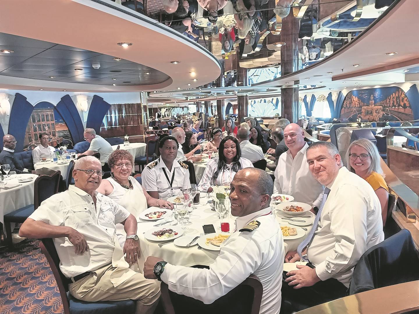 Die plaaslike toerorganiseerders Una en Billy Pick (links) was onder die genooide gaste wat by die bekendstelling van die nuwe passasiersboot, die MSC Poesia, met ’n ete bederf is.