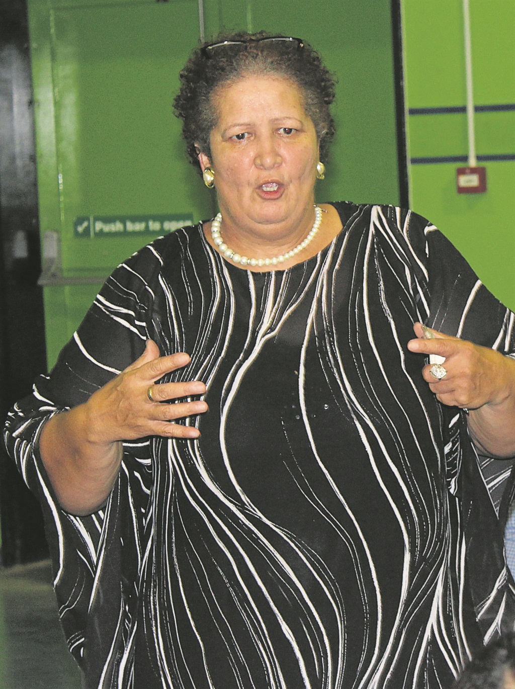 Sò meen Suzette Little, burgemeesterskomiteelid en “mini-burgemeester” van subraad 1, tydens ’n gemeenskapsvergadering Woensdag 8 Maart by die Robinvale-gemeenskapsaal.