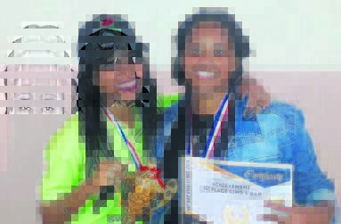 Lindell Diedericks en Jadine Adams het die beoordelaars behoorlik laat regop sit met hul sangtalent by Swag United se dans- en sangkompetisie. Dié twee se duet het hulle die eersteprys besorg by die kompetisie wat Saterdag 2 Maart by Saxonsea Primêr se saal gehou is. Foto: Verskaf