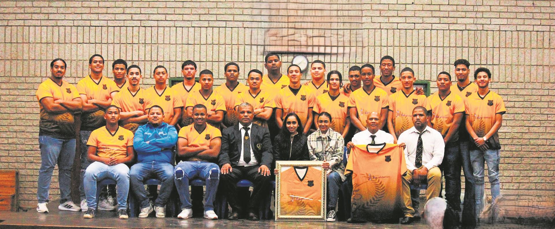 Hamlets se o.20-span pronk in hul nuwe uitrusting. Angelo Arendse (voorsitter) sit voor in die middel by verteenwoordigers van die onderskeie borge. Foto’s: David Rossouw