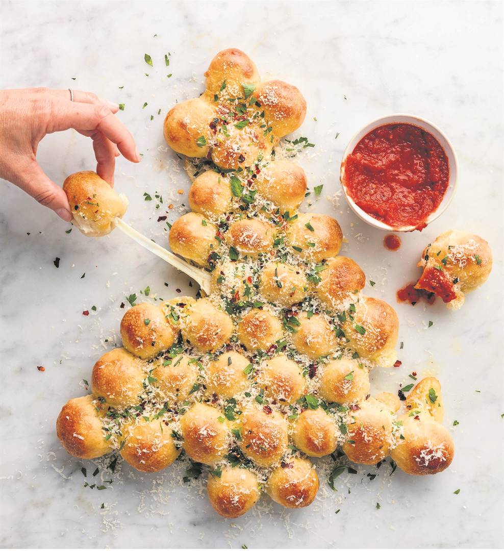 Try this cheesy chicken-mayo garlic bread festive tree to get into the spirit of things. Serves 15.