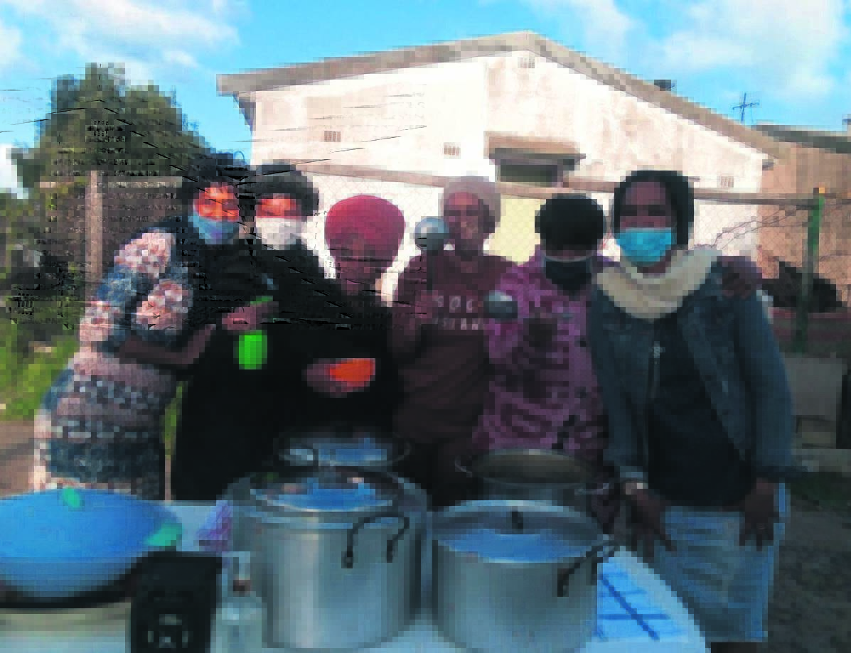Uitgesoekte vroue van God, suster Wendy Smit en van haar medesusters, reik na die gemeenskap uit met kos en ander benodigdhede. Dié groep is in die grendeltyd gestig en groei vinnig. Volgens Smit is daar ook ’n groep in Namibië gestig. Foto: Verskaf