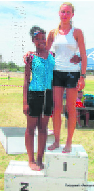 Aksie met interhuisatletiek: Verskeie interhuisrekords het die naweek gespat. Meer as 20 skoolrekords is deur die atlete van Hoërskool Hopefield verbeter. Een daarvan was ’n rekord van 19 jaar in die 400 m-item vir meisies o.15 wat deur Stephanie van Zyl (regs) verbeter is met ’n tyd van 1 :05. By haar is Kerishnie Esau wat tweede was. Foto: george april