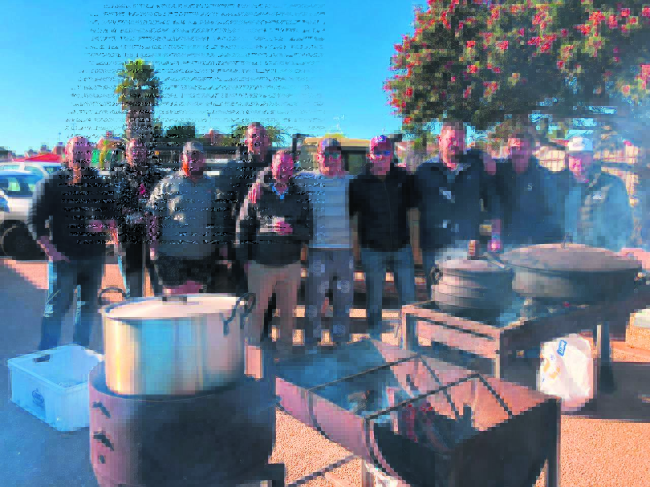 Die Saldanha-Tafelronde het Sondag 24 Julie besluit om die inwoners van Huis Wittekruin in Vredenburg met ’n heerlike lamspotjie te bederf. Hulle wil graag vir Cartol bedank vir die skenking van die vleis. Die potte het behoorlik geroer en volgens JP Bezuidenhout van die Tafelronde was dit vir die manne ’n groot voorreg om die senior burgers te bederf en na al hul stories te luister. Links staan die manne by die potte.