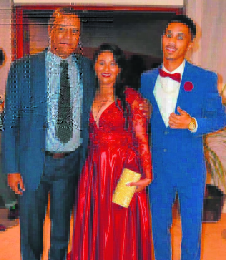 Die skoolhoof, Cliffie Vraagom, saam met Carin Cloete en haar metgesel, Ashwin Prince, by Diazville HS se afskeid.