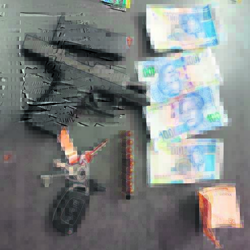 Die voertuig is deursoek, waarna die vuurwapen asook sewe sakkies tik en ’n halwe Mandrax-tablet ontdek is.