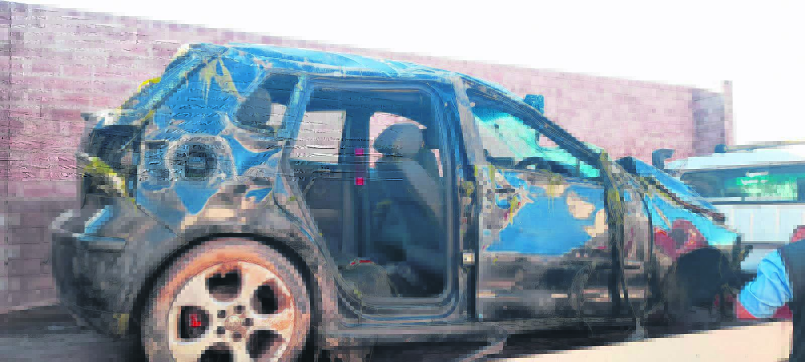 Een man is dood en drie beseer in ’n ongeluk Maandag (3 Februarie) op die Vredenburg-Velddrifpad (R399). Dié Opel Astra het ’n paar keer in die lug getol nadat die bestuurder vermoedelik beheer oor die voertuig verloor het. Foto: Alida Buckle