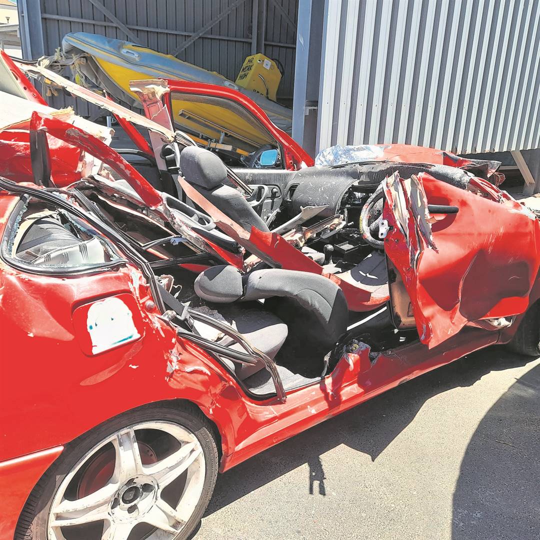 Gouws het verduidelik dat ’n platbak-sleepwa vol houtitems Grantham se alombekende rooi 2002 Volkswagen Polo reg van voor getref het. Die Polo se dak is deur die impak afgeskeur nadat die sleepwa, van sowat drie meter lank, losgekom het van die bakkie wat dit gesleep het.