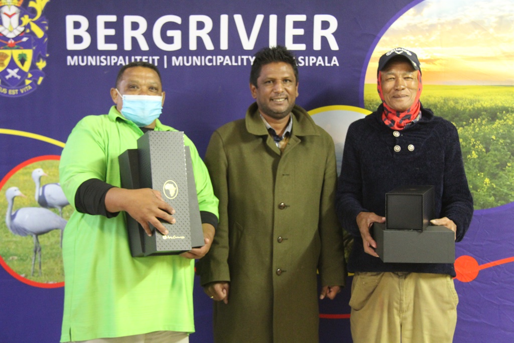 Die Bergrivier-gholfklub in Velddrif het Saterdag (14 Februarie) sy jaarlikse interdorp-kompetisie gehou. Die wenners is die Gatkrappers – (van links) Johan van Wyk, Taxi Kotzé, Lionel Johnsen en Gert Coetzee. Volgende jaar stap die Poephoekers van Dwarskersbos, die Vaalballe van Velddrif of die Pampoengatters van Port Owen dalk met dié gesogte trofeë weg.