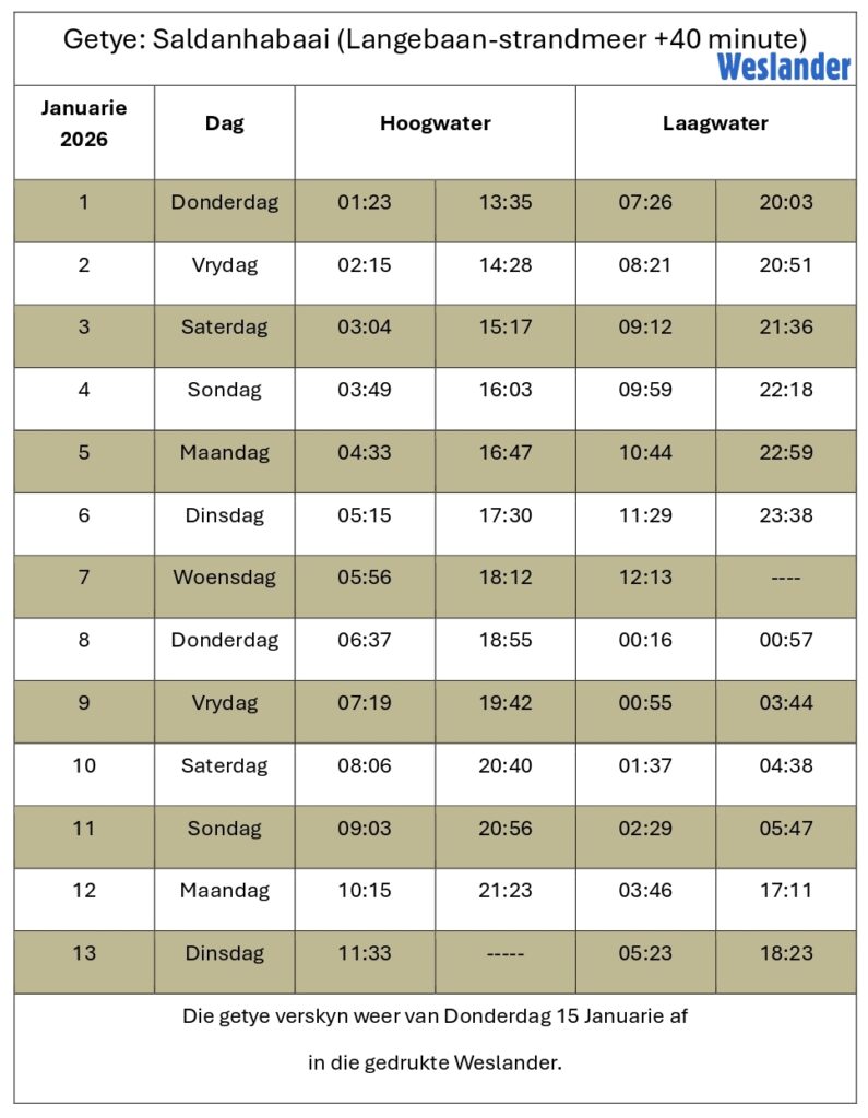 Getye Desember 2025 tot Januarie 2026. Weslander.