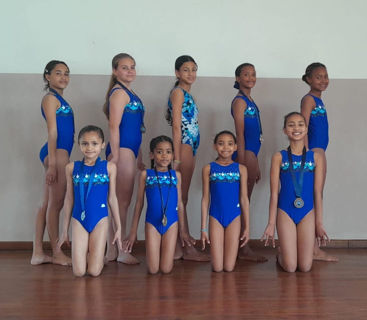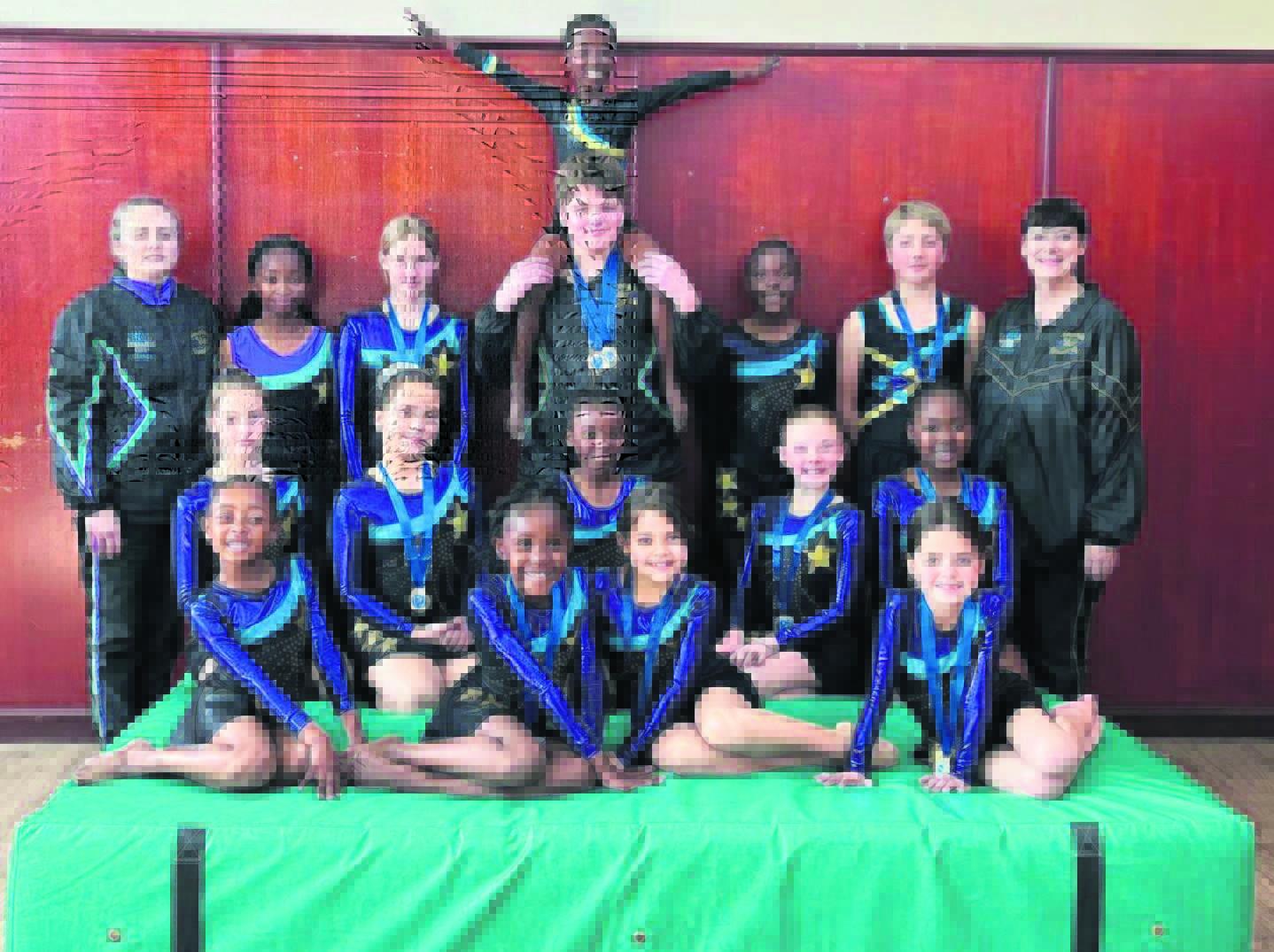 Yzerfontein-gimnaste: Voor is Amber Nel (goud en brons), Arya Smit (goud) en Elnè Nortjè (2 x goud). In die middel: Ava Young (goud en silwer) en Lizette Groenewald (2 x goud). Agter: Lana Dearlove (brons), Leah Taljaard (goud en brons) en Lily Wood (goud).Hopefield-gimnaste: Voor: Zeenah Walters (silwer), Gloria Afrika (goud), Shammer Schippers en Em-Lynn Josephs (brons).