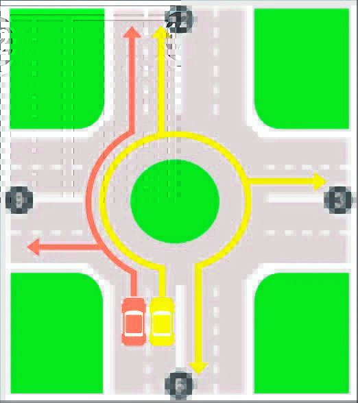 Remember “right has the right of way” in a traffic circle, so yield to vehicles approaching from the right, even if you were there before them.