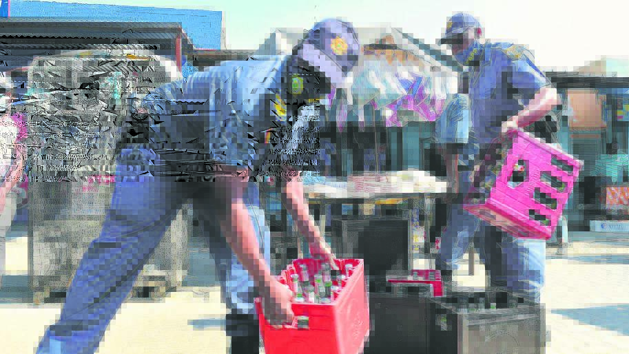 Polisiebeamptes lê beslag op drank wat op ongelisensieerde persele verkoop word. Foto: