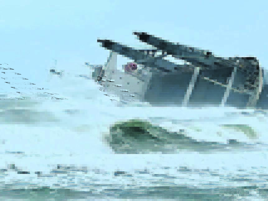 Verlede week se storms het veroorsaak dat die skip se luikbedekkings losgeraak en van die vaartuig af losgekom het, wat die vragruim kwesbaar gelaat het.