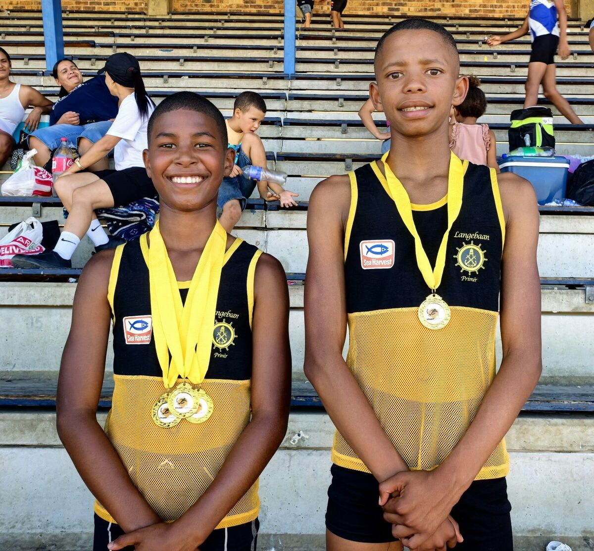Langebaan Primary School athletes gave it their all. Joshwinn Cross (left) earned the title of boys u-12 Boland Champion after a demanding series of semi-finals in the 75 m, 150 m, and long jump events, where he matched the Boland record. Xavier Lewis (right) finished in 5th place in the boys u-13 1  500m event and achieving a personal best of 2:11 in the 800 m. The ahletes will next compete in the Western Cape Primary School championships on 7 March in Stellenbosch.