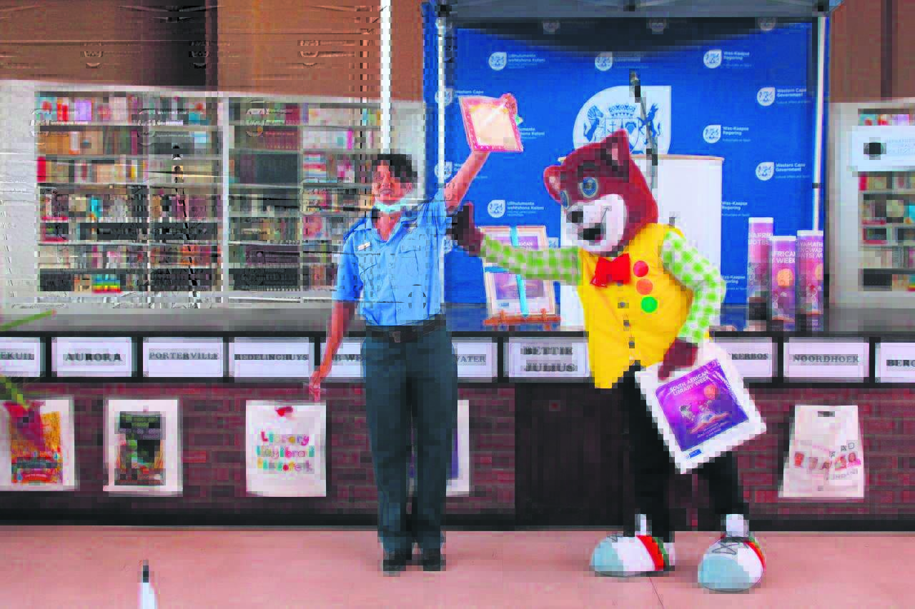 Daantjie Kat, a Bergrivier municipal mascot, also delivered an educational role play for the children on how to treat books with care.
