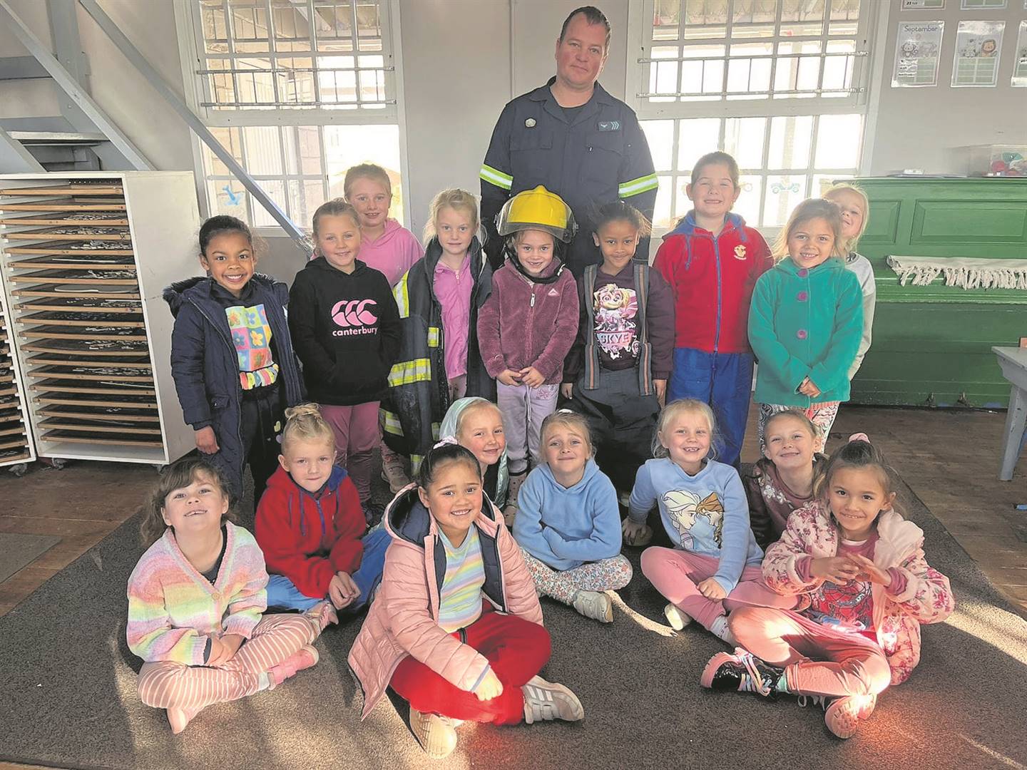 Die Laerskool Vredenburg bedank sers. William Brits, ’n lug­vaart­reddings­brand­weerman van die Lugmagbasis Lange­baanweg, wat die gr. R-leerders besoek het om hulle meer oor die brandweer te leer.