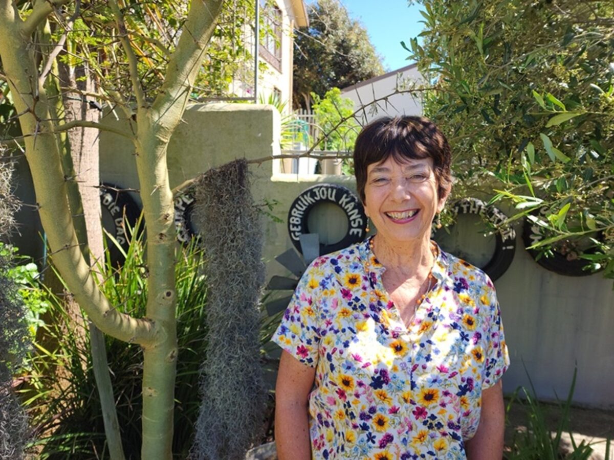 Die 58-jarige vrou met haar rooi-groen kleurige hare, is ’n bol energie. Terwyl jy met haar praat sien jy hoe die “wielietjies” in haar kop draai en sy alweer haar volgende projek beplan.