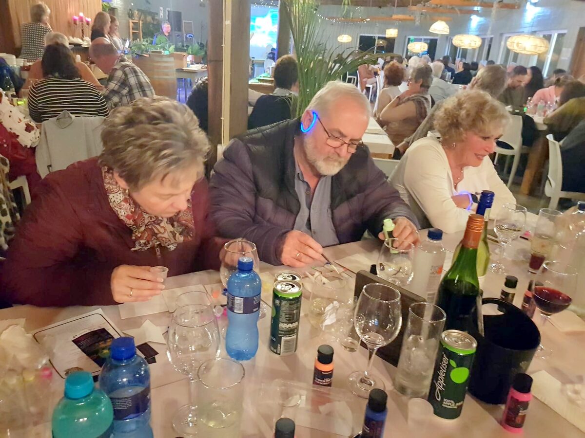 Lidmate van die NG kerk Laaiplek het verlede Saterdag (14 Junie) geleer om vir die donker te skilder. Glimverf is gebruik om lewe aan hul verbeeldingryke skeppinge te gee by die genotvolle Skink en Skilder-aand by die Soverby Lapa tussen Velddrif en Dwarskersbos.