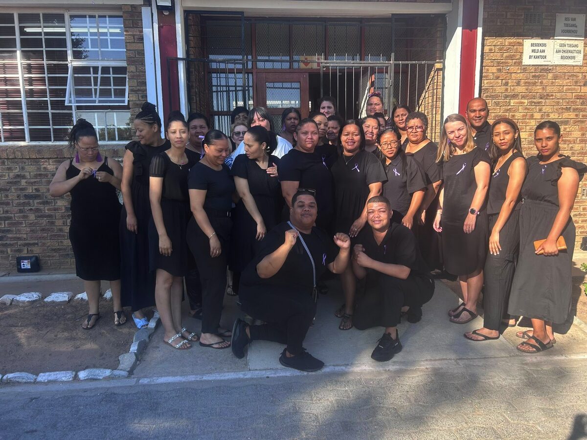 Onderwysers in die Weskus het hul ondersteuning en solidariteit teen geslagsgeweld getoon deur swart te dra. Bo is die onderwysers van die Hoërskool Diazville.