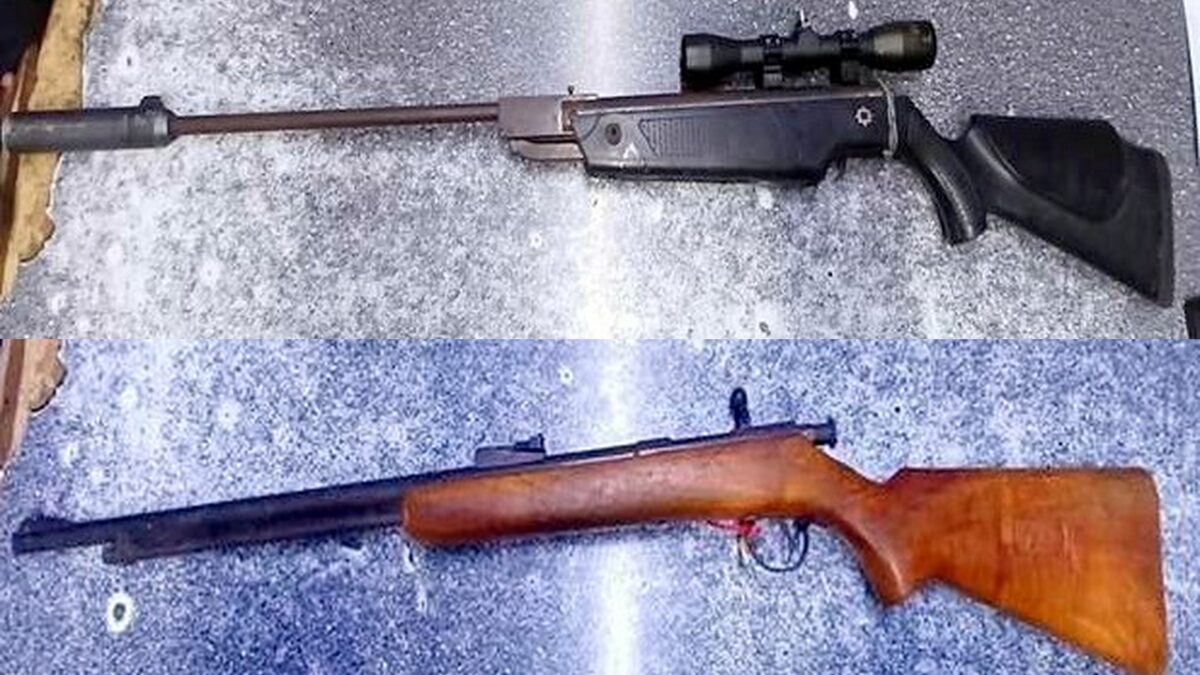 A .22 rifle and air rifle with a scope and silencer (above) were found abandoned in St Helena Bay on Saturday night during a crime prevention operation. Please contact the police on 022 736 8060 if you have any relevant information. Photo: SAPS