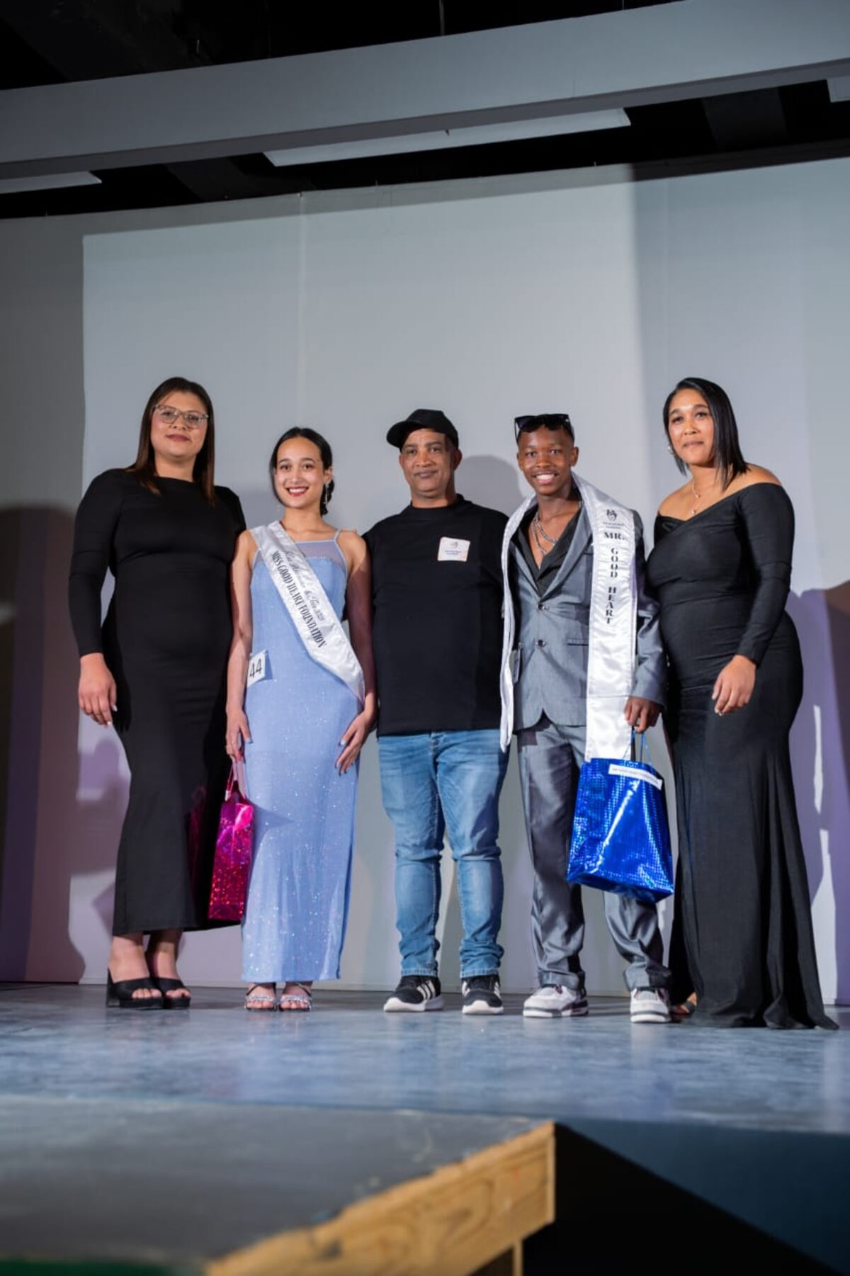 Van links is Gaynor Pieters (medestigter van Good Heart Foundation), Amké Pheiffer (Mej. Good Heart Foundation), Netaneel Pieters (medestigter van Good Heart Foundation), Aden McClean (Mnr. Good Heart Foundation) en Diona Carolus (vrywilliger van Good Heart Foundation).