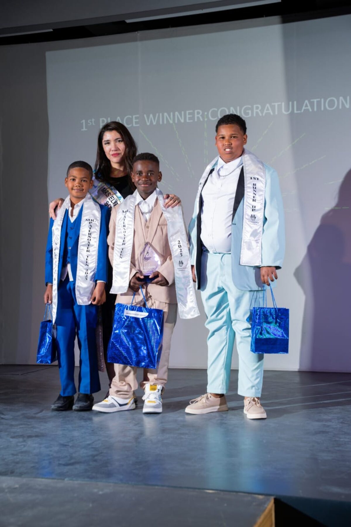 Paisley Carolus (Mej. Pre-Tiener naaswenner), Simone Kriel, Neelah Walters (Mej. Pre-Tiener) en Ugene Cloete (derde).