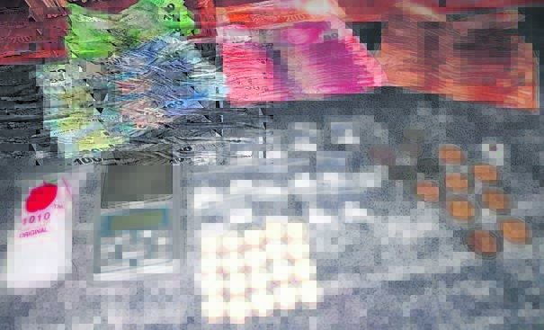 Altesaam 20 Mandrax-tablette, 15 klein sakkies tik en R13 399 in kontant is verlede Donderdagaand (6 Julie) in Trevor Lewin (55) se huis in Faroastraat, Clanwilliam, gekry. Die polisie het Donderdagaand ’n lasbrief vir sy inhegtenisname uitgevoer en afgekom op die dwelms en kontant, versteek in die kombuiskaste. Lewin het Vrydag 7 Julie in die Clanwilliam-landdroshof verskyn op aanklag van die onwettige handel in dwelms.Foto: SAPD