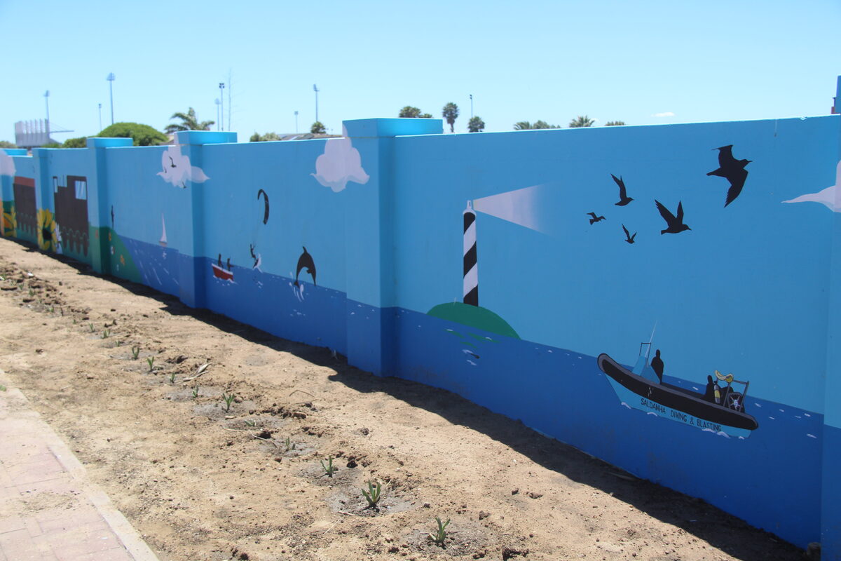 In November 2024 three people approached André and Sheena Truter within a span of two weeks to ask them if there was something they could do to cheer up the long wall at the entrance of the Saldanha residential area along the rail road track.