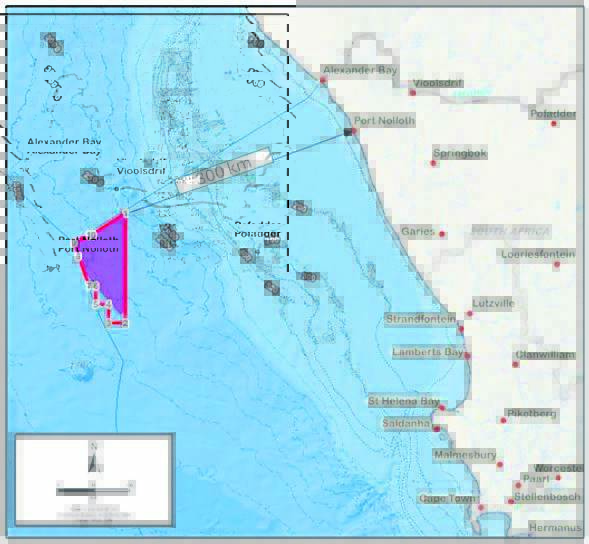 Volgens GP Kriel, omgewingskonsultant by SLR, strek die voorgestelde projekgebied van ongeveer 300 km van die kus van Port Nolloth af suid langs die westelike kuslyn, ongeveer 5 254 km² groot. Die water daar is sowat 2 500 m tot 3 200 m diep.