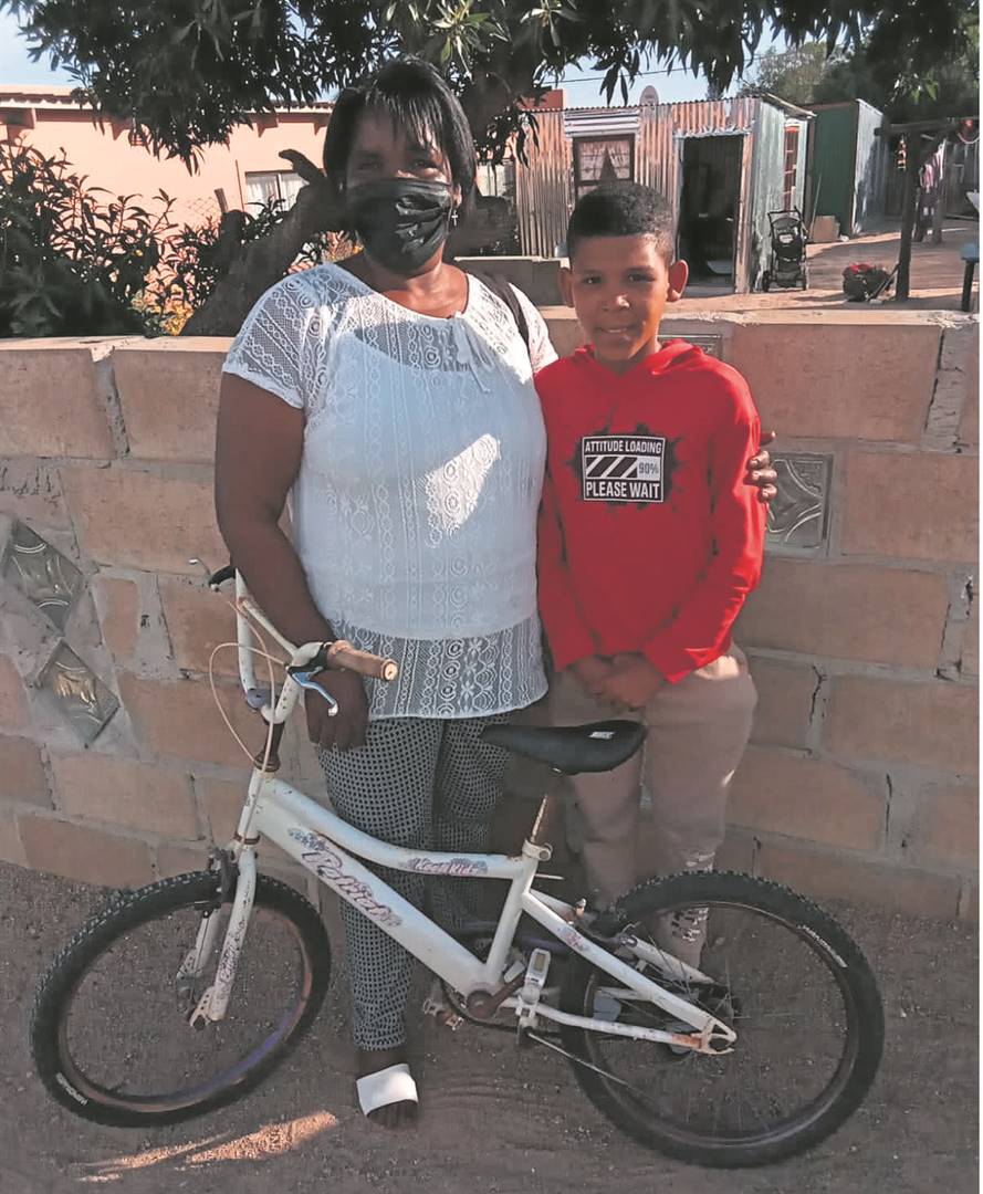 ’n Tienjarige seun van Vredenburg se Kersfeesdroom het waar geword nadat hy ’n fiets ontvang het. In die berig (“ ’n Fiets vir Kersfees, ‘sblief!” inWeslander van 25 November 2021) lees ons hoe hierdie geskenk hom na aan die hart lê. Mathys Brutus het net voor Kersfees die hartsnare van Lena Waterboer geroer ná sy versoek om graag ’n fiets te kry. Waterboer het die seun se droom danksy ’n skenking bewaarheid en sy het vir hom ’n fiets gekoop waarmee sy hom op Oukersdag verras het. Links staan Waterboer by Brutus en sy nuwe fiets.