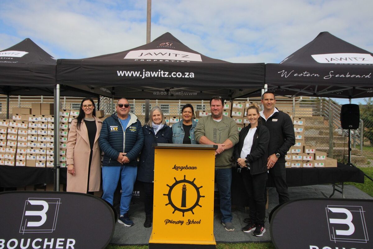 Jawitz West Coast, Langebaan CPF and Jawitz Western Seaboard gave back to Langebaan Primary School by proudly sponsoring 450 pairs of school shoes to the deserving learners.