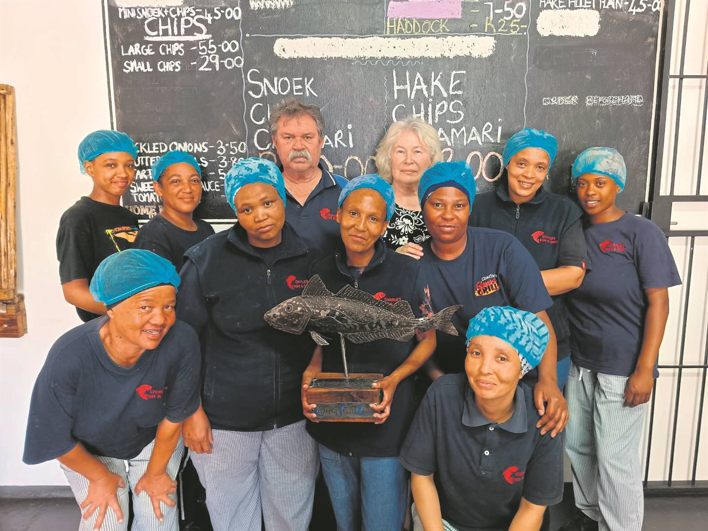 Charlie’s Fish Shop se gedugte span – die wenners in die wegneemeetplek-afdeling.