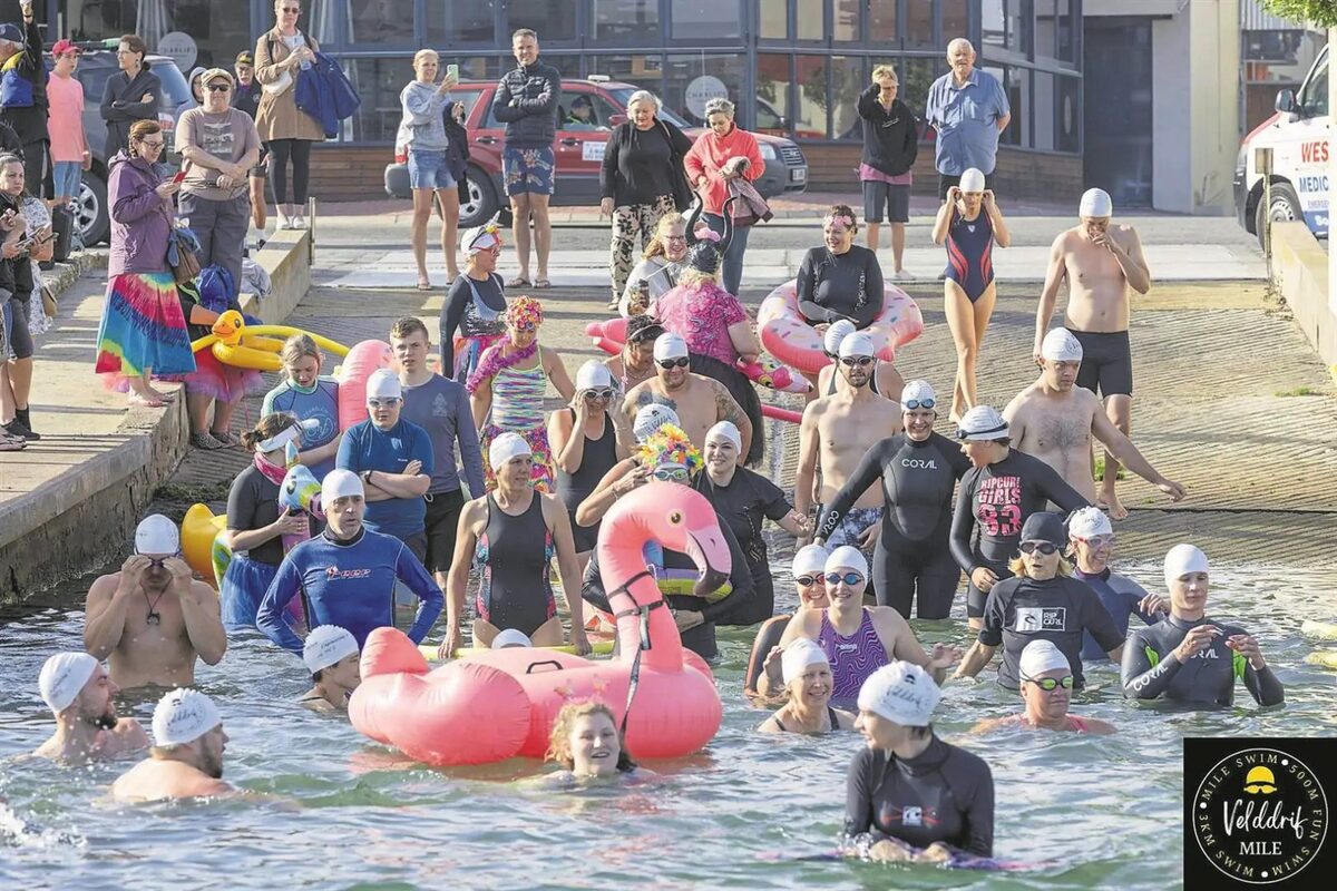 Die jaarlikse Velddrif-myl het weereens vanjaar by die Port Owen-marina in Velddrif weggespring. Die geleent- heid het die afgelope Saterdag (8 November) plaasgevind en swemmers van wyd en syd het kom deelneem.